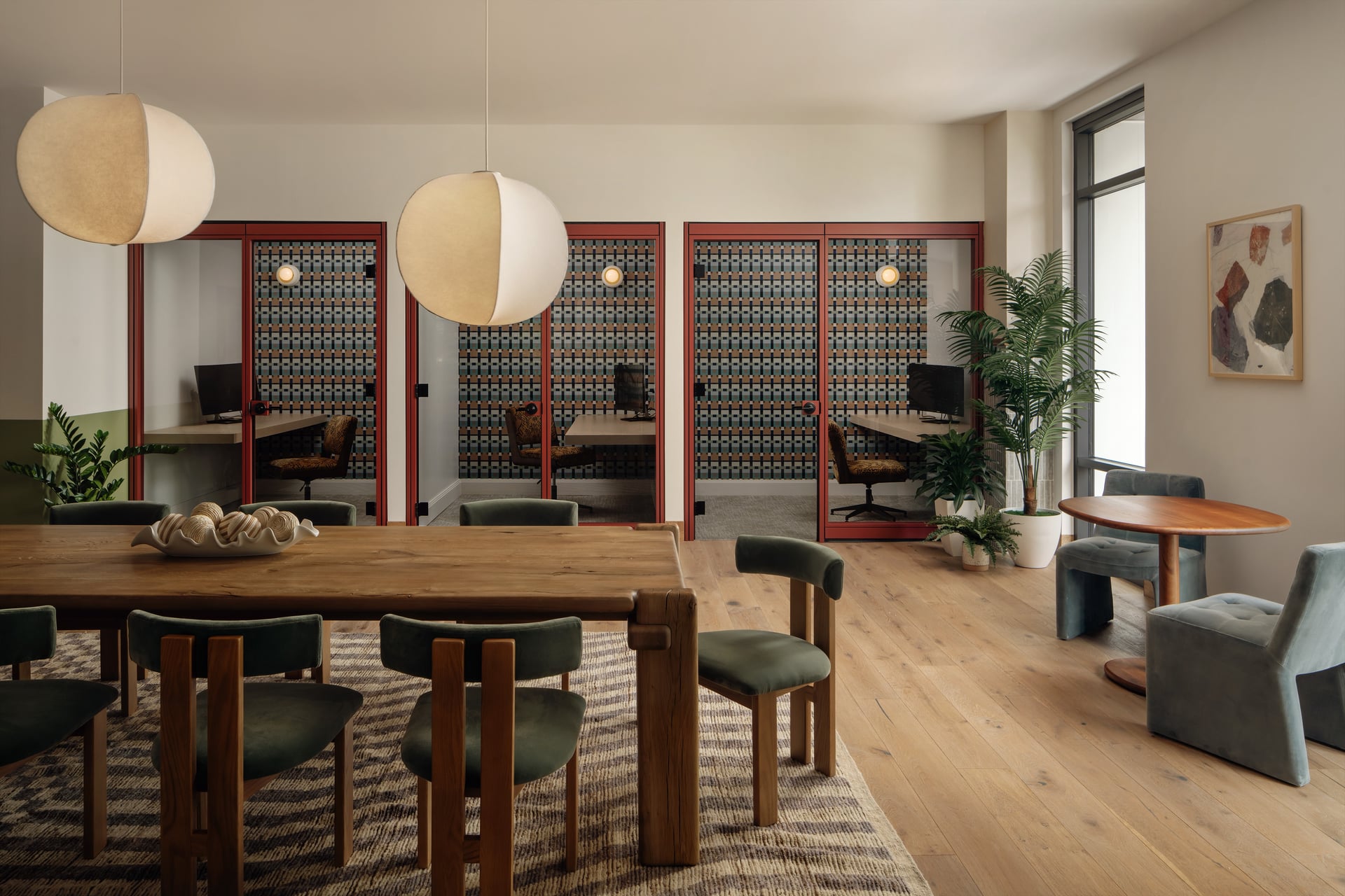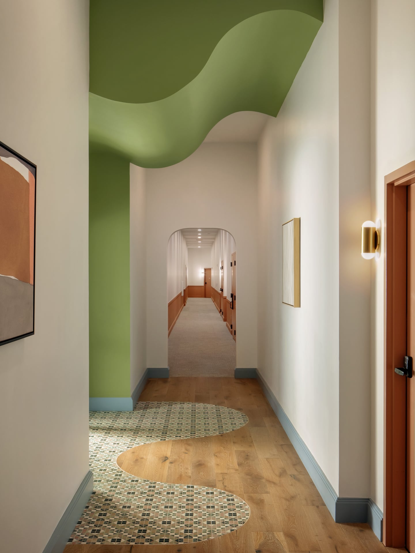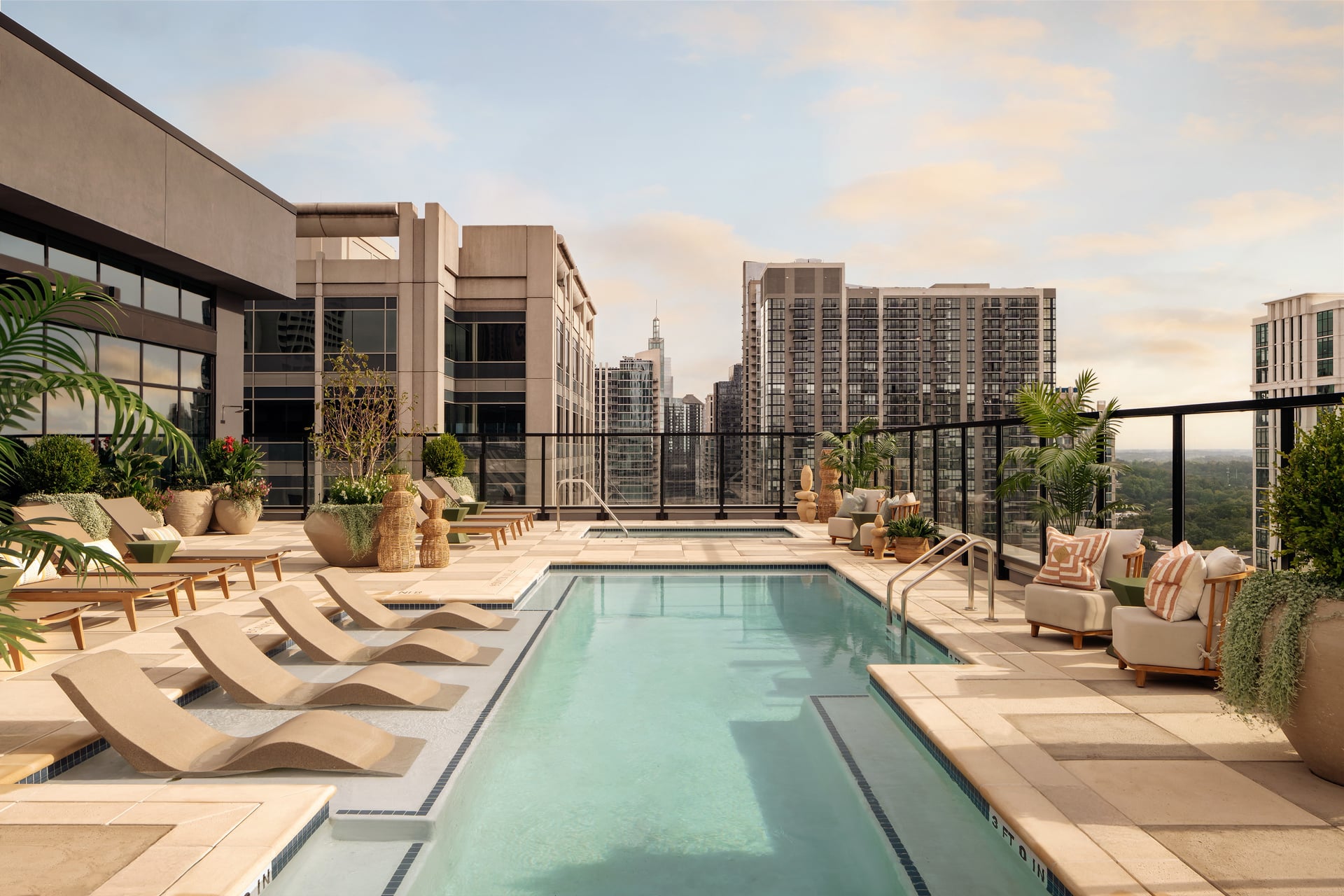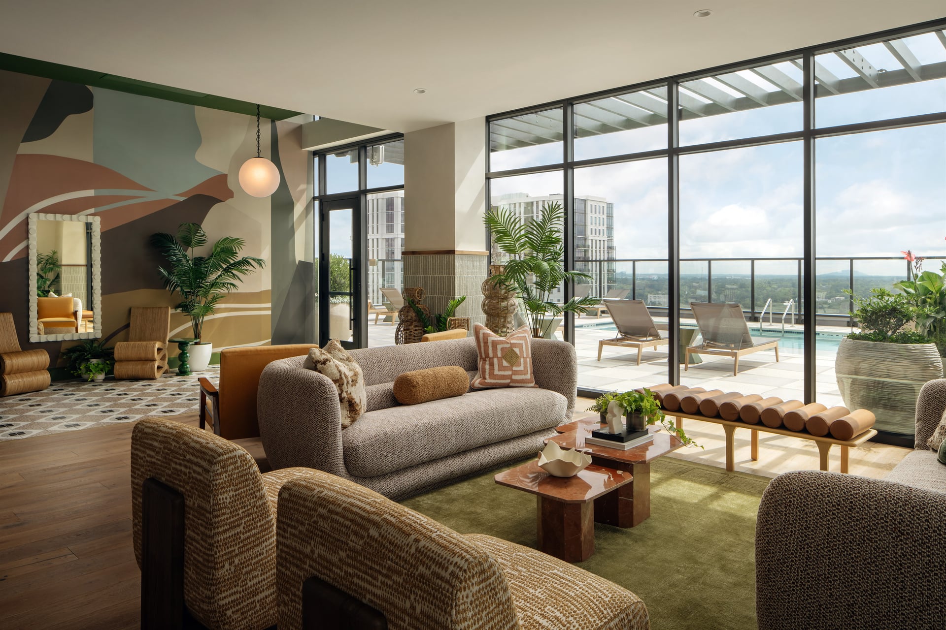 Rambler Atlanta is a student housing interior design project that reimagines what communal living can look and feel like. The design balances playfulness with function across a full suite of amenities including a café, co-working zones, wellness areas, a fitness centre, and a rooftop pool. Bold colours, graphic patterns, and expressive forms create an uplifting, high-energy environment that feels more boutique hotel than student accommodation. Each space is designed to encourage interaction and community while still offering moments of calm. The result is a vibrant, design-led residence that students actually want to spend time in.