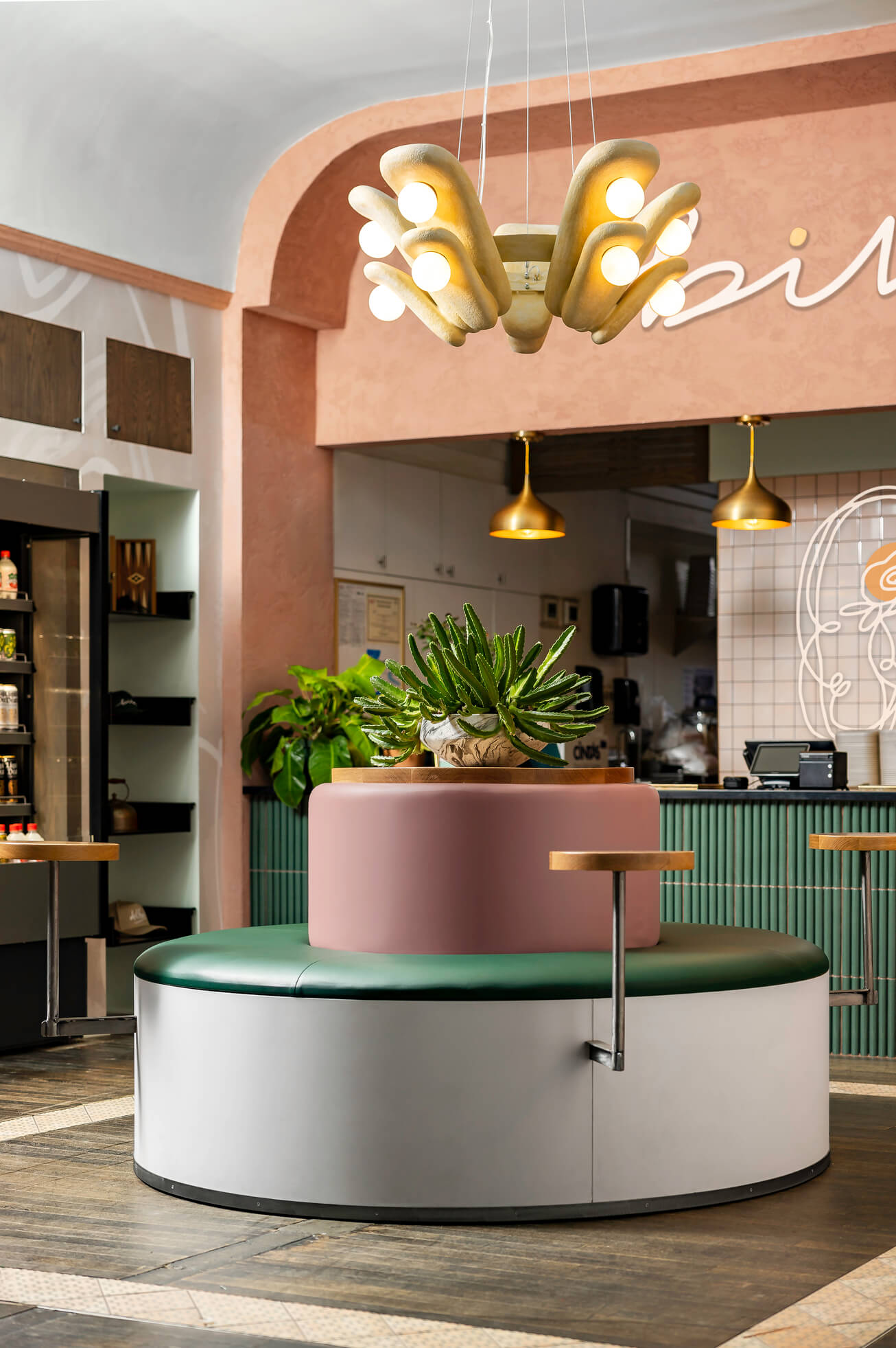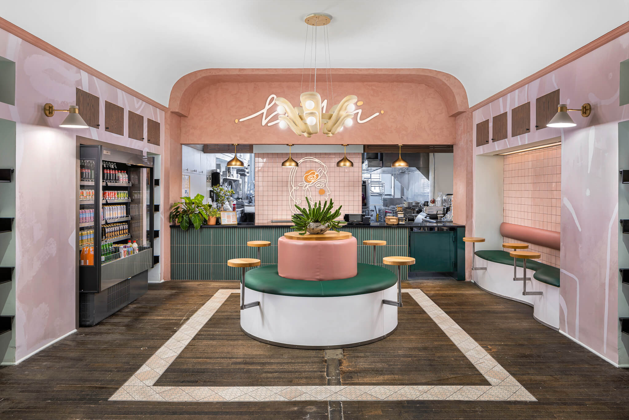 Taking inspiration from the key principles of traditional Iranian cuisine, we created a layered interior, framing both the entry and service counter with exaggerated staggered arched portals.