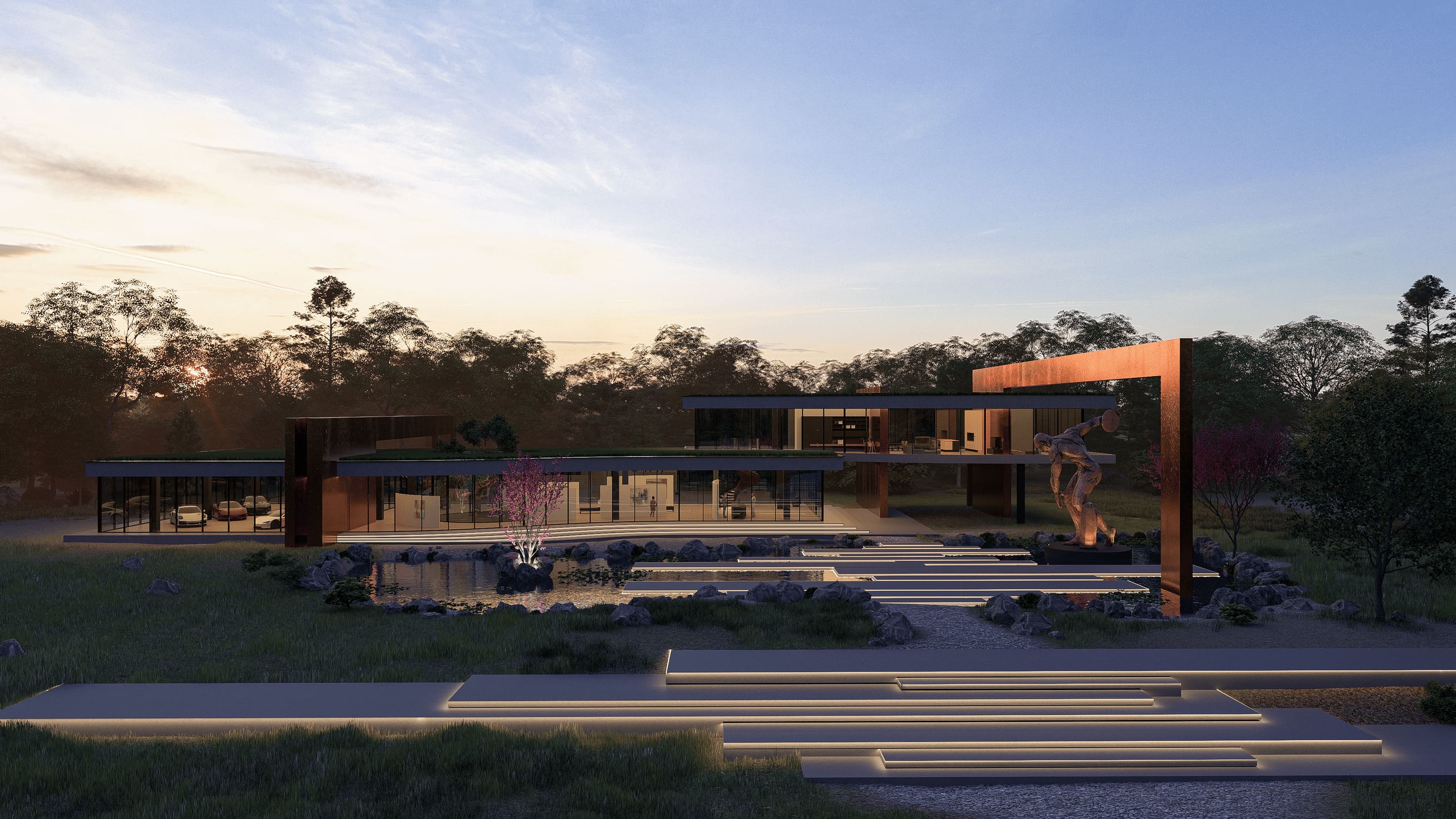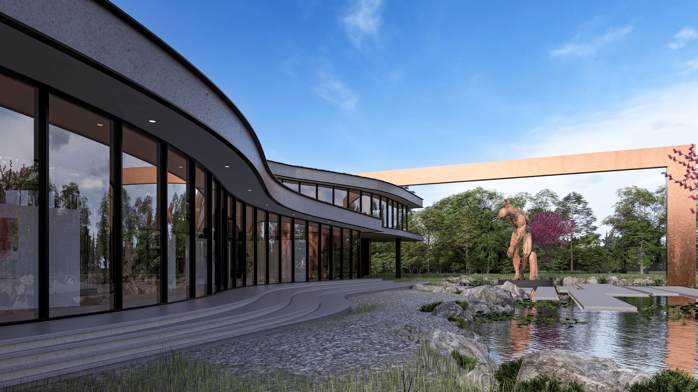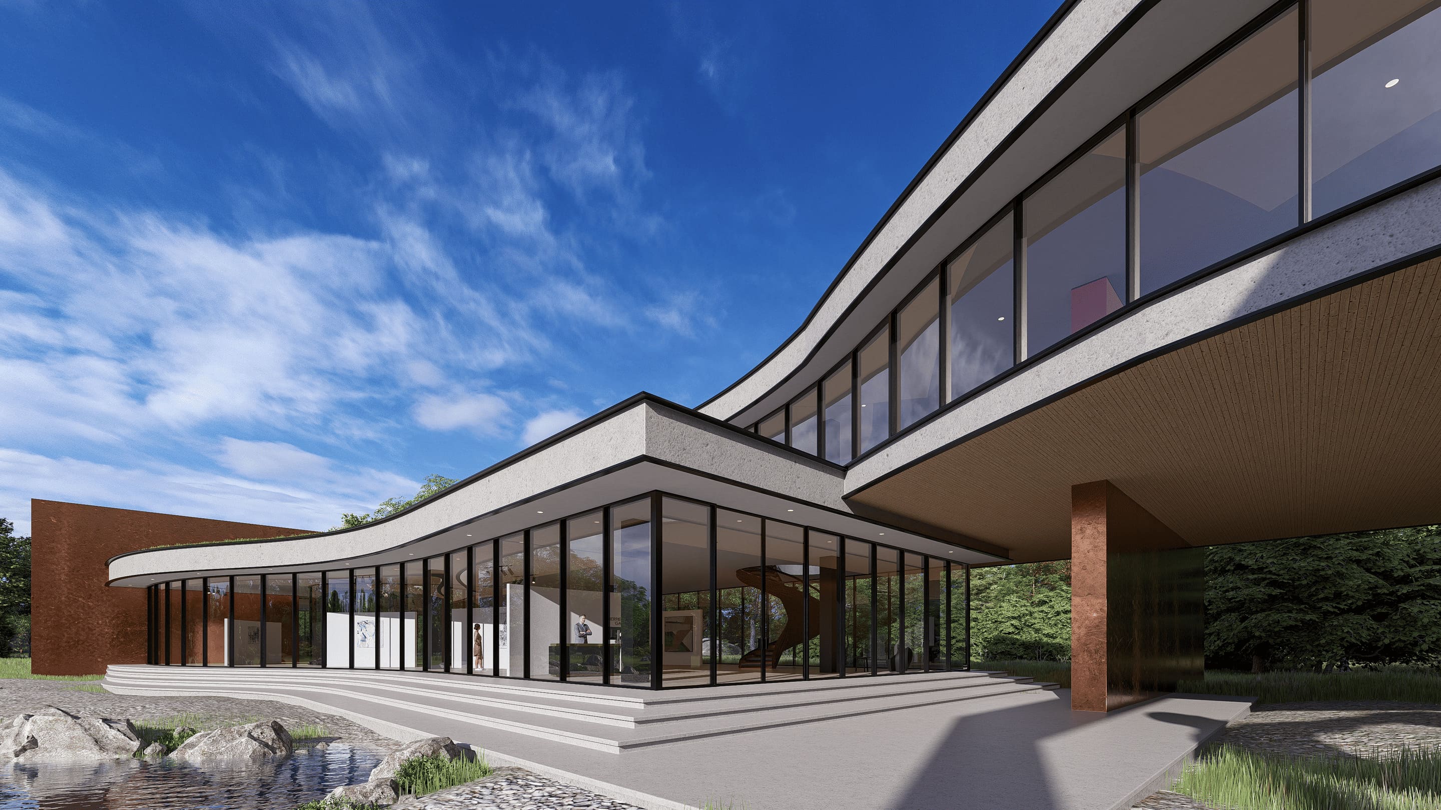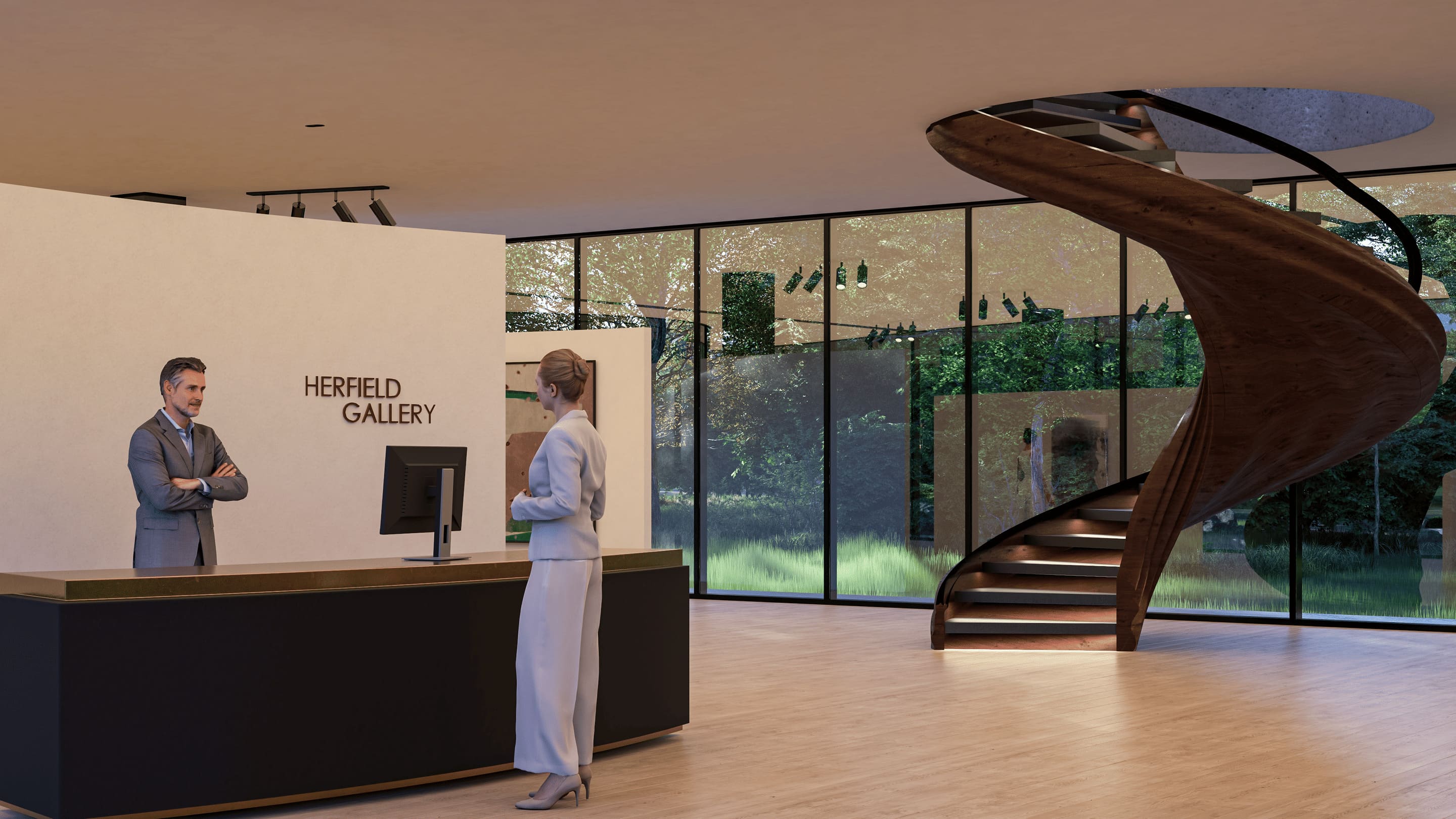 A private art gallery and retreat set within a hilltop estate in upstate New York. Herfield Gallery fuses sculptural, avant-garde architecture with its surrounding landscape - perched above the terrain to command sweeping views while sitting quietly within it. Designed for both living and creating, the building connects deeply with nature through curated sightlines, bold geometric forms, and a rich material palette of stone, timber and glass. Interior spaces flow between gallery, studio and residential program, blurring the line between where art is displayed and where life happens. Herfield is a space built to inspire reflection, creativity, and lasting dialogue between art, architecture and the natural world.