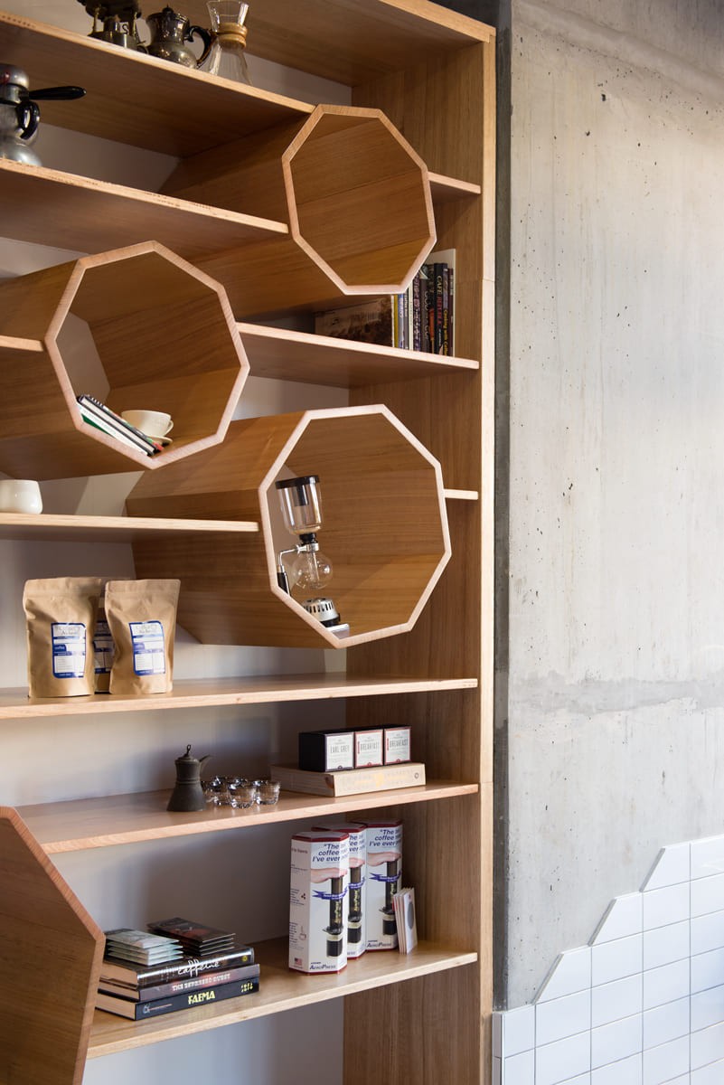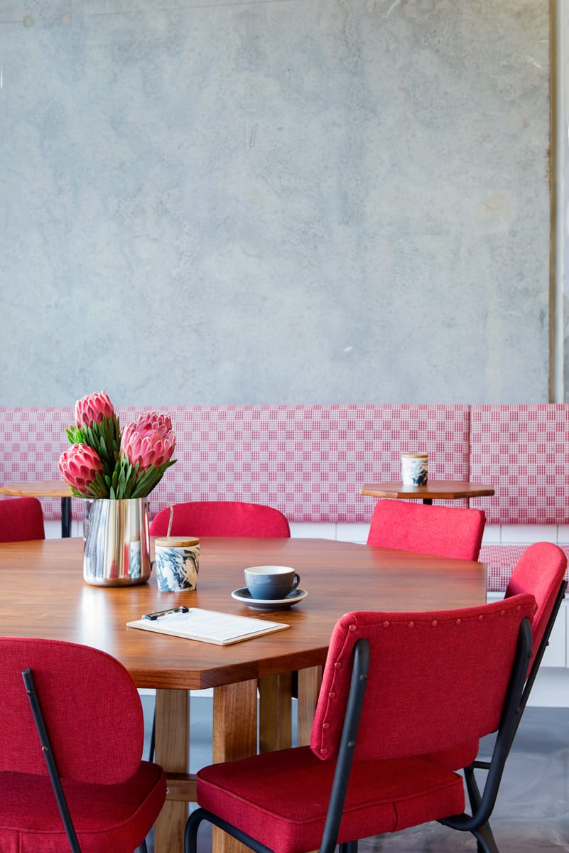 Lola is a café interior design project in Brisbane that packs serious personality into a compact footprint. Named after and inspired by the character painted high on the raw concrete wall, the interior is layered with stories and personal touches that make the space feel meaningful and rich in character. White tiles sit alongside raw concrete, clean oak joinery, and white cabinetry, creating an interior that reads as fresh and refined while maintaining an honest, unpretentious edge. Punchy pink accents and graphic detailing keep things playful, proving that small spaces can deliver big design moments when every element is considered.
